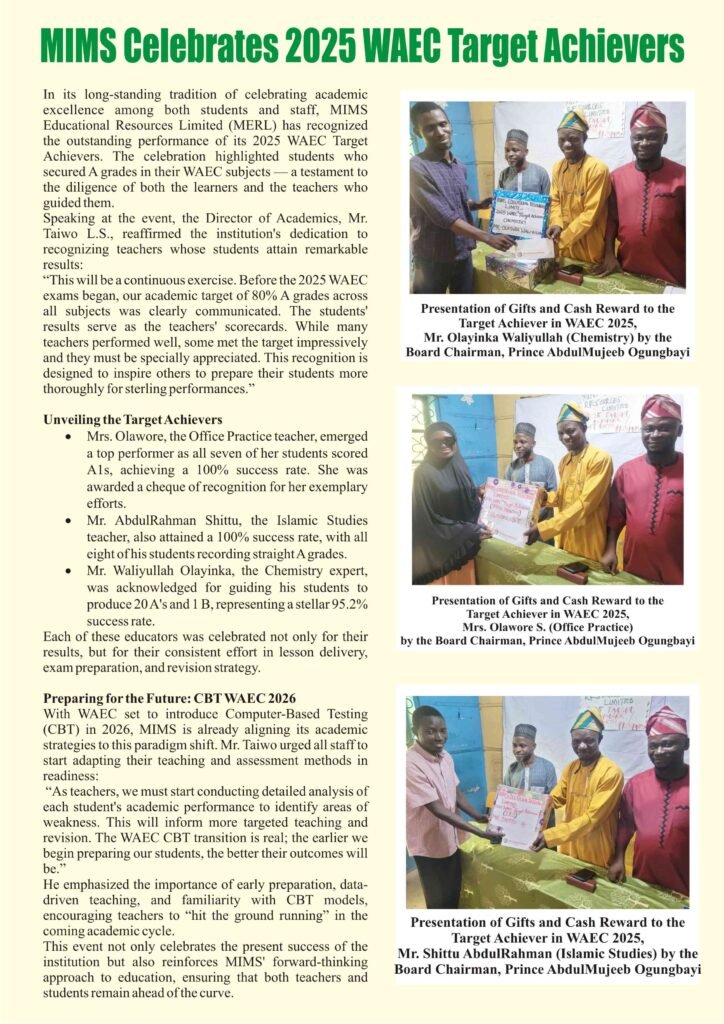 Since inception, MIMS Educational Resources Limited journey has been characterized by