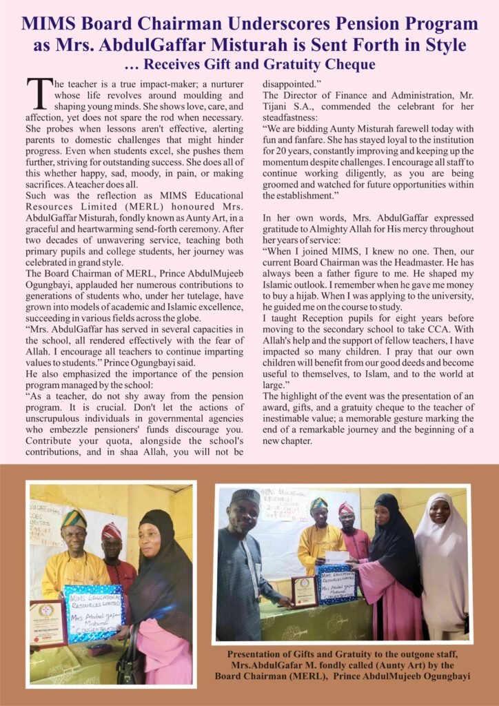 We appreciate what MIMS is doing and we wish the organization greater success in the future. The joy of seeing MIMS products achieve lofty heights should be pleasing and we pray that Allah rewards the efforts. The management should not relent and they should keep sowing in the young ones. May Allah continue to reward them,” he concluded
