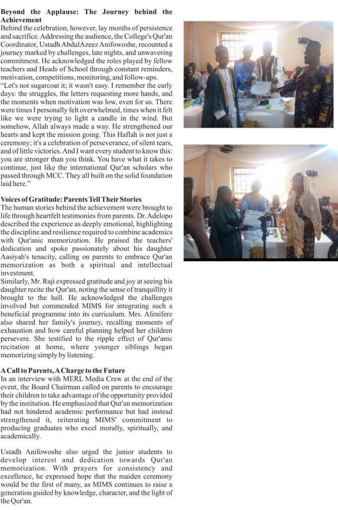 We appreciate what MIMS is doing and we wish the organization greater success in the future. The joy of seeing MIMS products achieve lofty heights should be pleasing and we pray that Allah rewards the efforts. The management should not relent and they should keep sowing in the young ones. May Allah continue to reward them,” he concluded