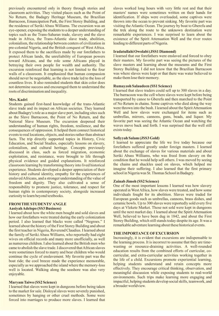 “I do not gainsay when I proclaim that over the years our school has grown, evolved and thrived. We have expanded our curriculum, invested in cutting edge infrastructure and also fostered a community that value diversity, inclusivity and excellence. Our viability in the sector is evident in outstanding performances at the Prestige National Quiz Competition where we emerged the best in both the Junior and Senior Categories.